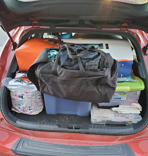 We're here - we're at Fireside Retreat - my favorite retreat spot in the whole world. After I managed to squeeze everything into my car. The Scan n Cut stayed at home as well as one embroidery unit. Don't ask. It was a tad difficult to see out the back window and should checking was a wee bit sketchy, but it was all good.