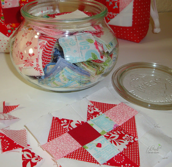 Whenever I sew something, I make sure to include a stack of squares from those scraps. It is such fun to get that jar down, from the shelf from time to time. A great memory ...
