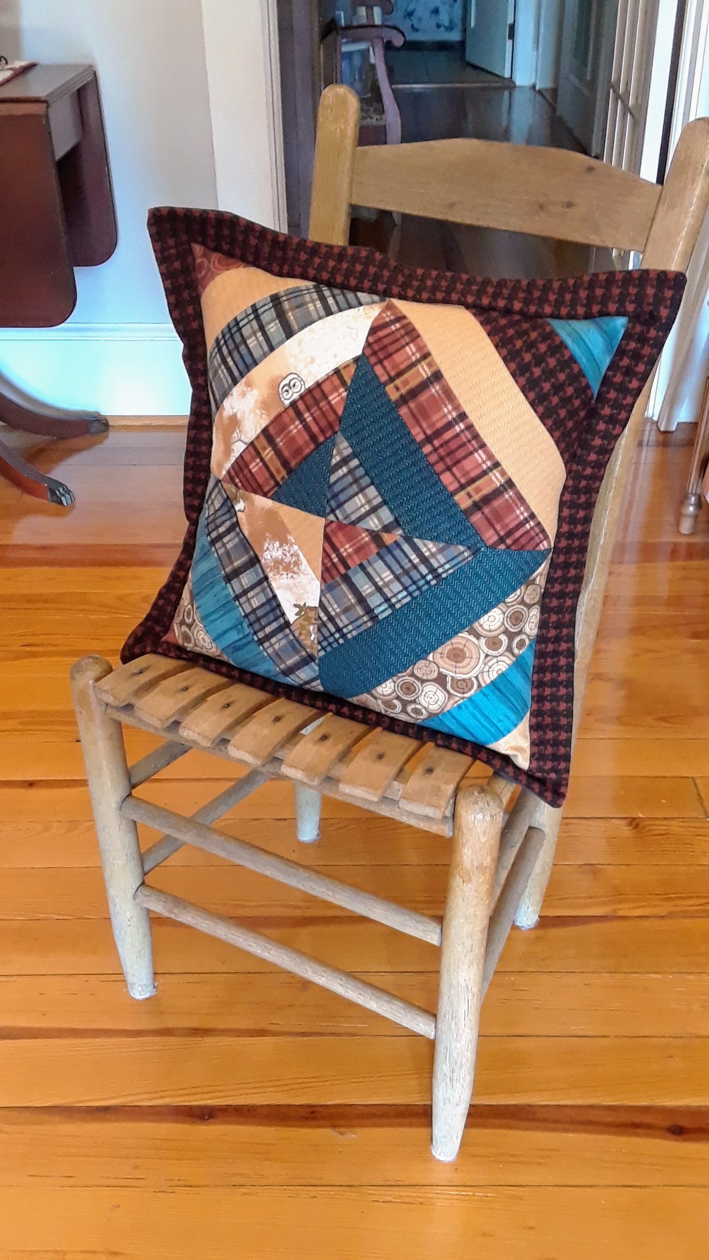 I saw a pillow pattern on Quilting Digest.Com that I loved. The one shown with the pattern is made with Fall colored flannel fabrics. Since the last several quilts that I've made were using the same pattern, it seemed like a quick project that I would enjoy making. Mine's not nearly as pretty, but I used the Fall flannel scraps that I had on hand.