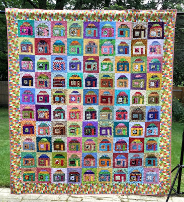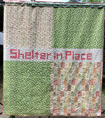 Regular readers followed the progress of this quilt. I began it during the stay-at-home weeks of April and May. It named itself. Assembling it was my One Monthly Goal for June. Barb-the-quilter completed the quilting last week and I finished the binding today (Monday morning).