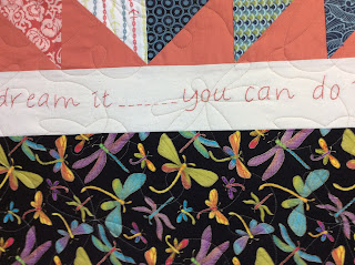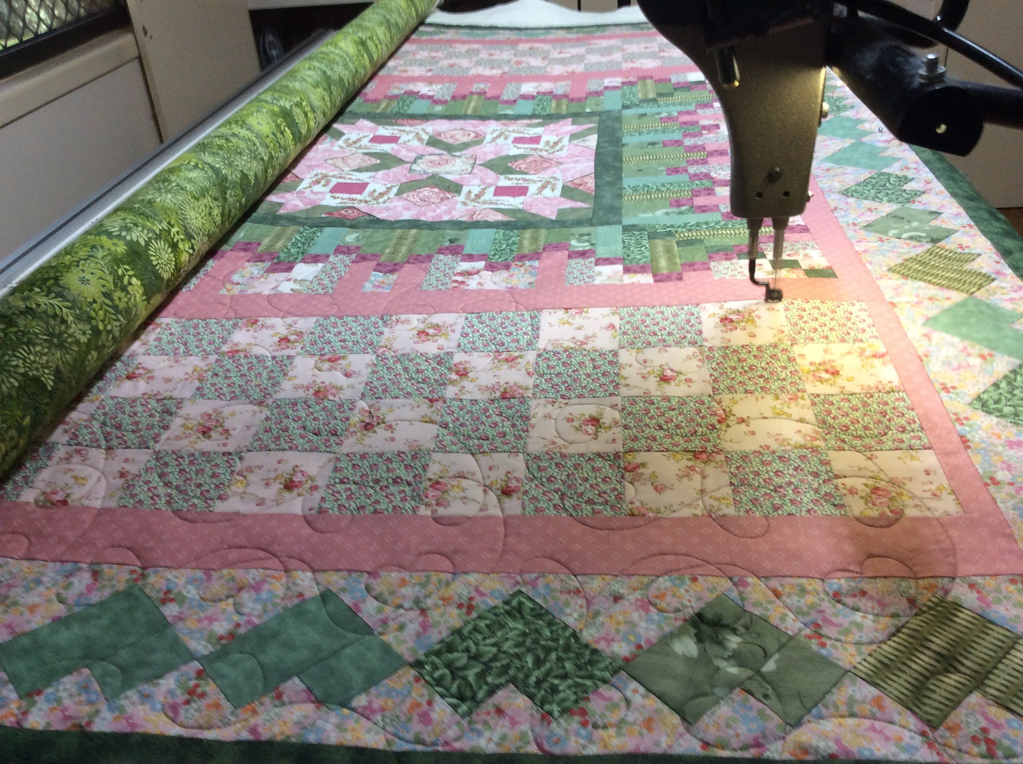 The first 2 quilts are from Jan at Sherwood. The first is being quilted with dragonflies and the second with the I love it pattern. The 3rd quilt is from Caity of Toowoomba who chose tropical leaves for this quilt.