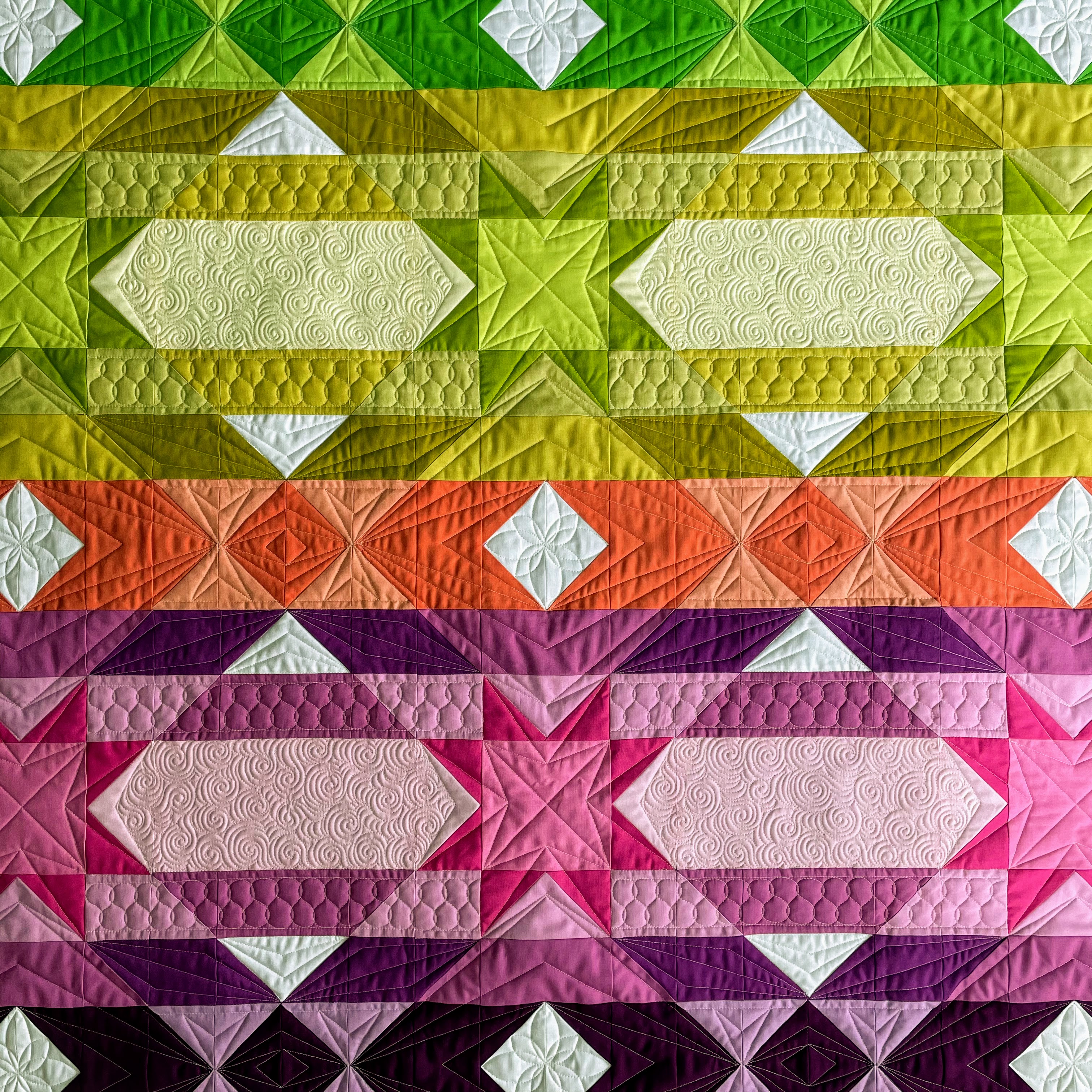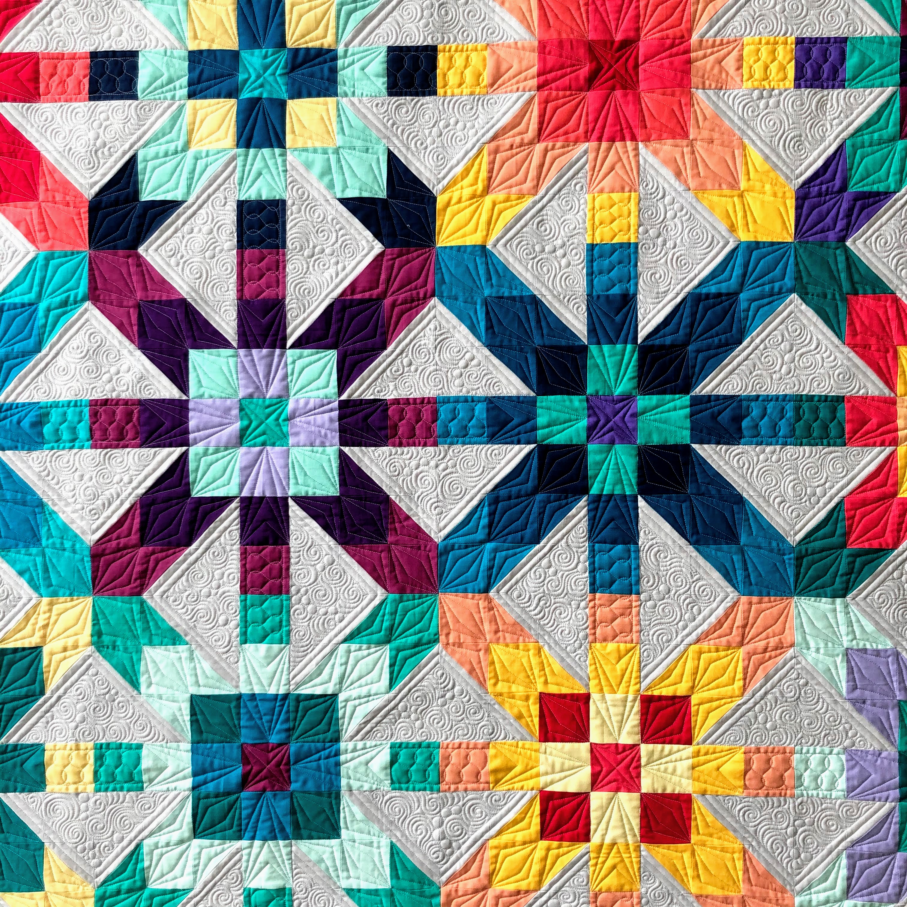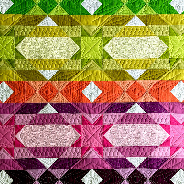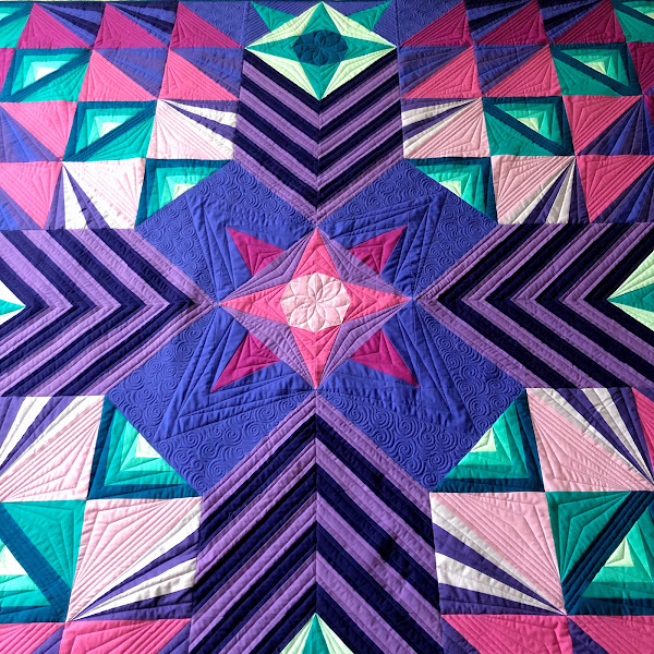 The Midnight Quilt Show with Angela Walters may have been over for more than a year now ... but I'm certainly not done making quilts that were featured in the show. My latest finish is Iridescent, a bright all-solids quilt designed by Slice of Pi Quilts.
