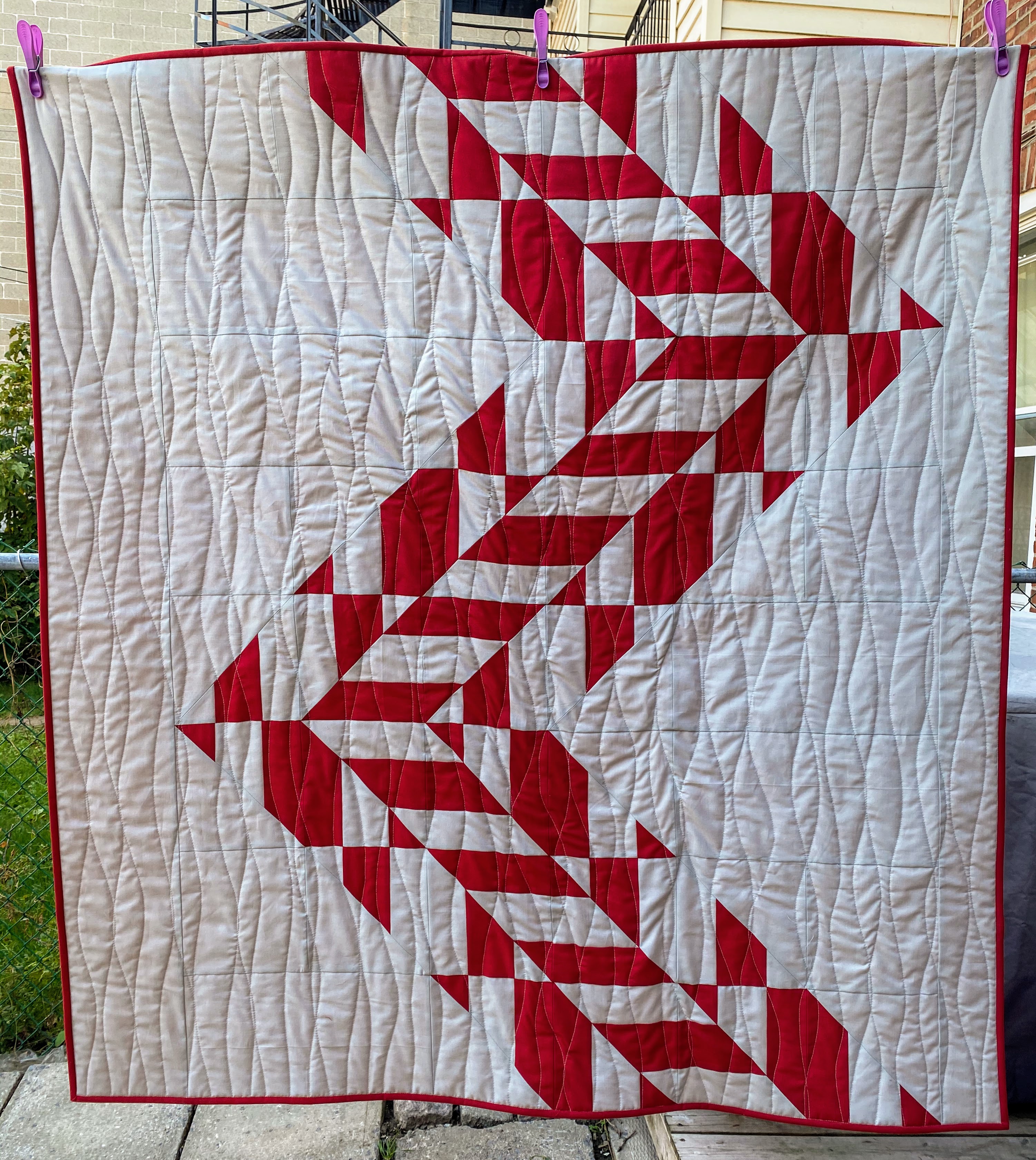 For my version of the quilt, I chose to make the baby quilt size with Kona Ash as the background and Kona Cardinal.