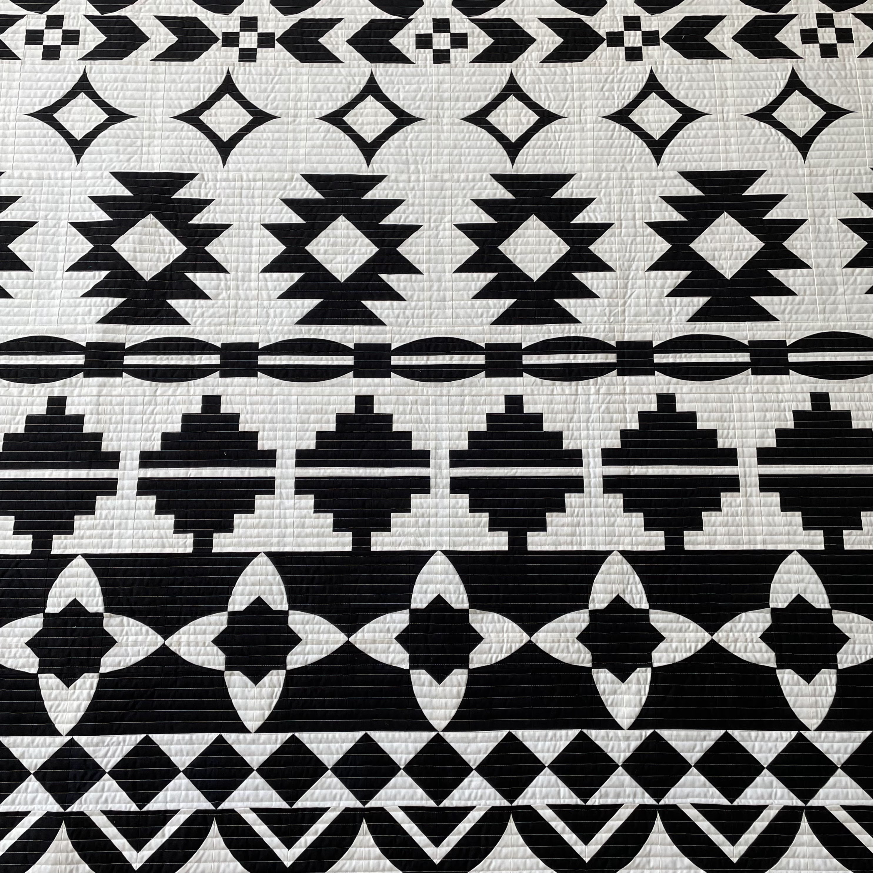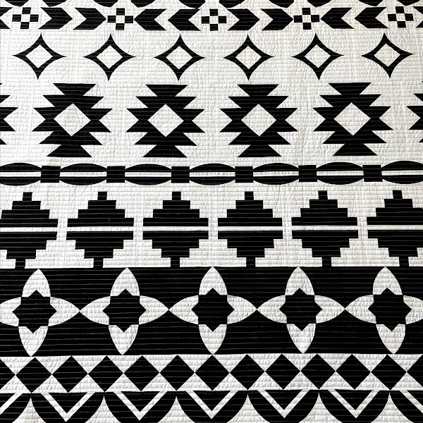 Because I promised myself to quilt some of my favorites in the stash this year, I decided to pull out Sedona. Sedona, designed by Sew Kind of Wonderful, is a beautiful black and white quilt featuring some really neat piecing. It is probably the most graphic quilt I've ever made!