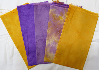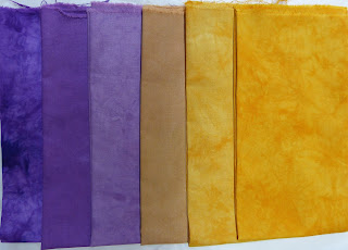For a new quilt, a challenge with my dyeing friends, I did choose the following fabrics. The multicolored fabric was made by Heidi Hunninghaus and we have to use at least 50% of it in the new quilt.