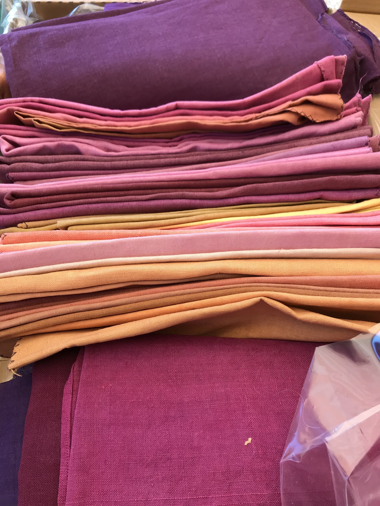 Sind diese Stoffe nicht wunderschön! Aber leider gehören sie nicht mir. Letzte Woche war eine Freudin bei mir zu Besuch und hat mir ihre schönen zum Teil über 100 Jahre alten gefärbten Leinen gezeigt. Am liebsten hätte ich diese für mich behalten. Und der Griff dieser Leinen - einfach herrlich!