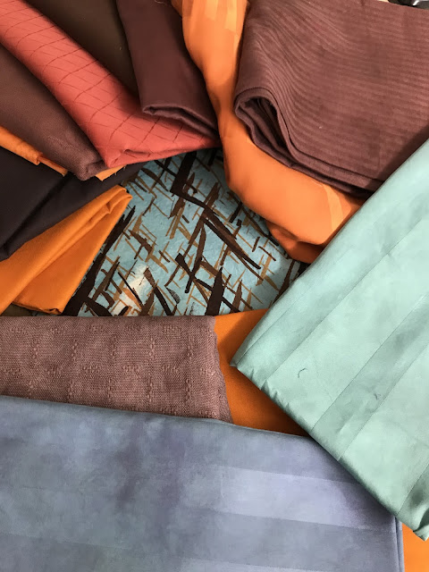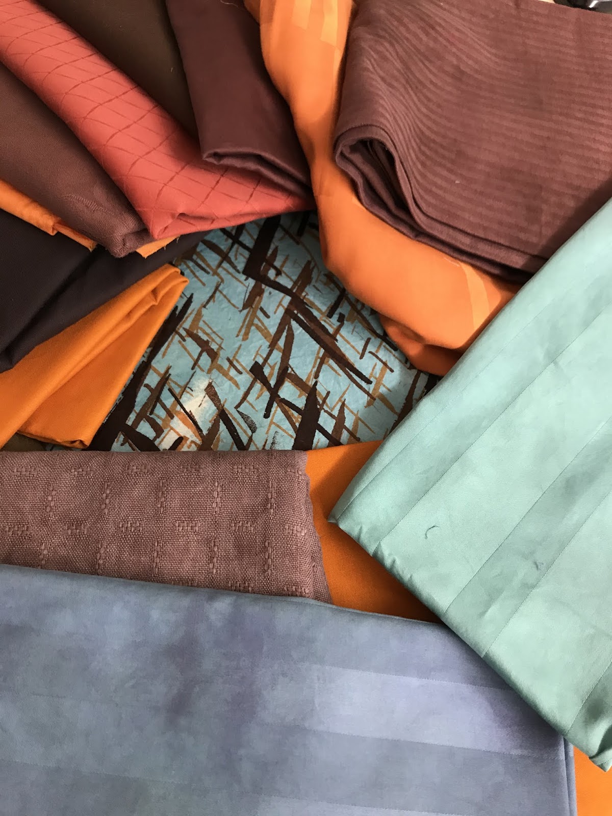 Für einen neuen Quilt, ein Challenge mit unserem Färbergrüppli, habe ich folgende Stoffe ausgewählt. Der gedruckt Stoff wurde von Heidi Hunninghaus hergestellt und von diesem Stoff muss mindestens 50% im Quilt enthalten sein.