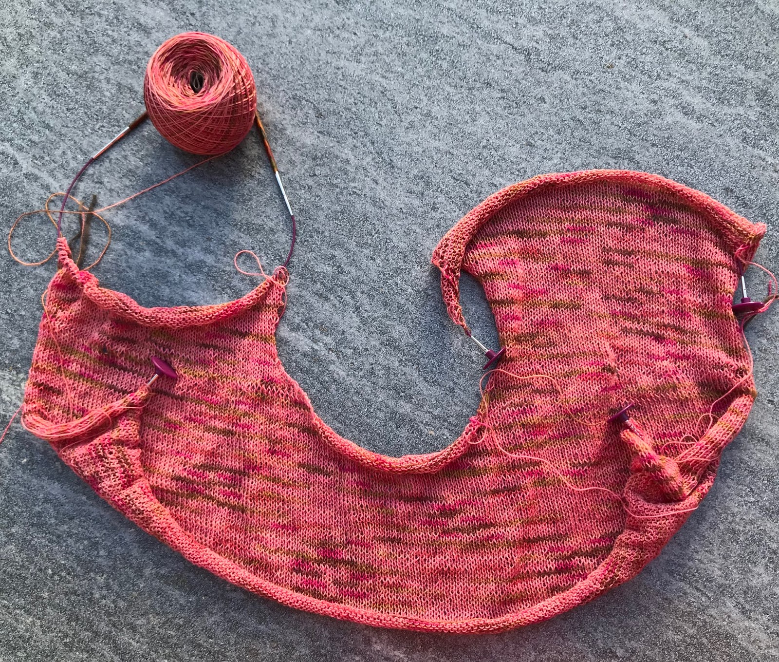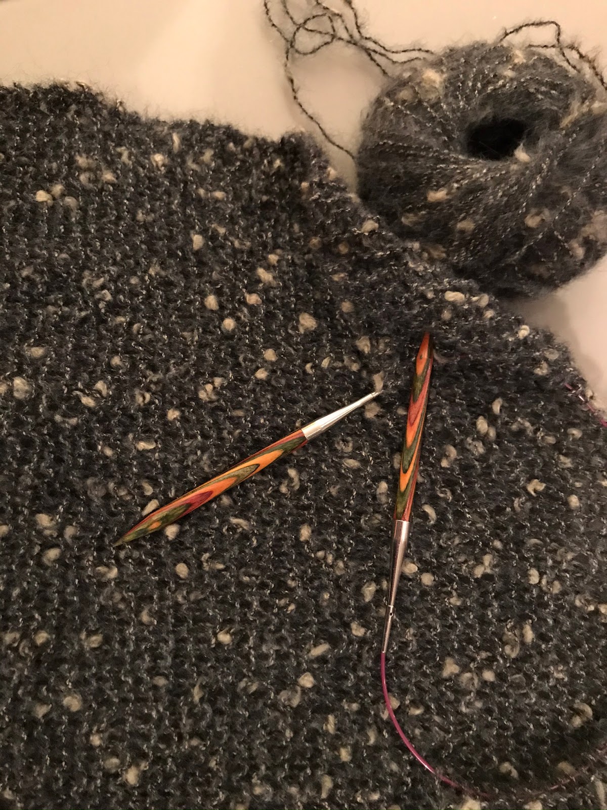 Kaum zu glauben, aber irgendwann wird das ein Pullover sein, gestrickt wird es von oben nach unten, spannend und es macht Spass.