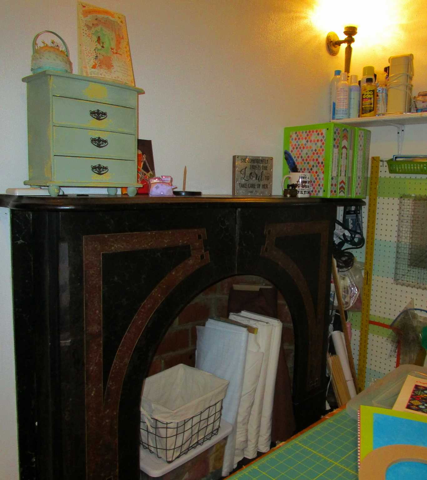 I used two 8-cube Kallax units, which I bolted to a sheet of plywood. I added casters (plus feet, to give some additional height since I am 5’10”), and the tabletop from my old cutting table on top, which was just barely big enough. I would ideally ...