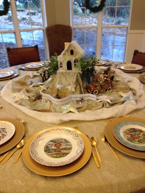 | A Christmas setting from a few years ago. Because I used regular cotton quilting fabric, I needed 9 yards. |