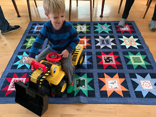 I used Egg White (Island Batik Neutral) as background. The binding is Fiery Orange.
