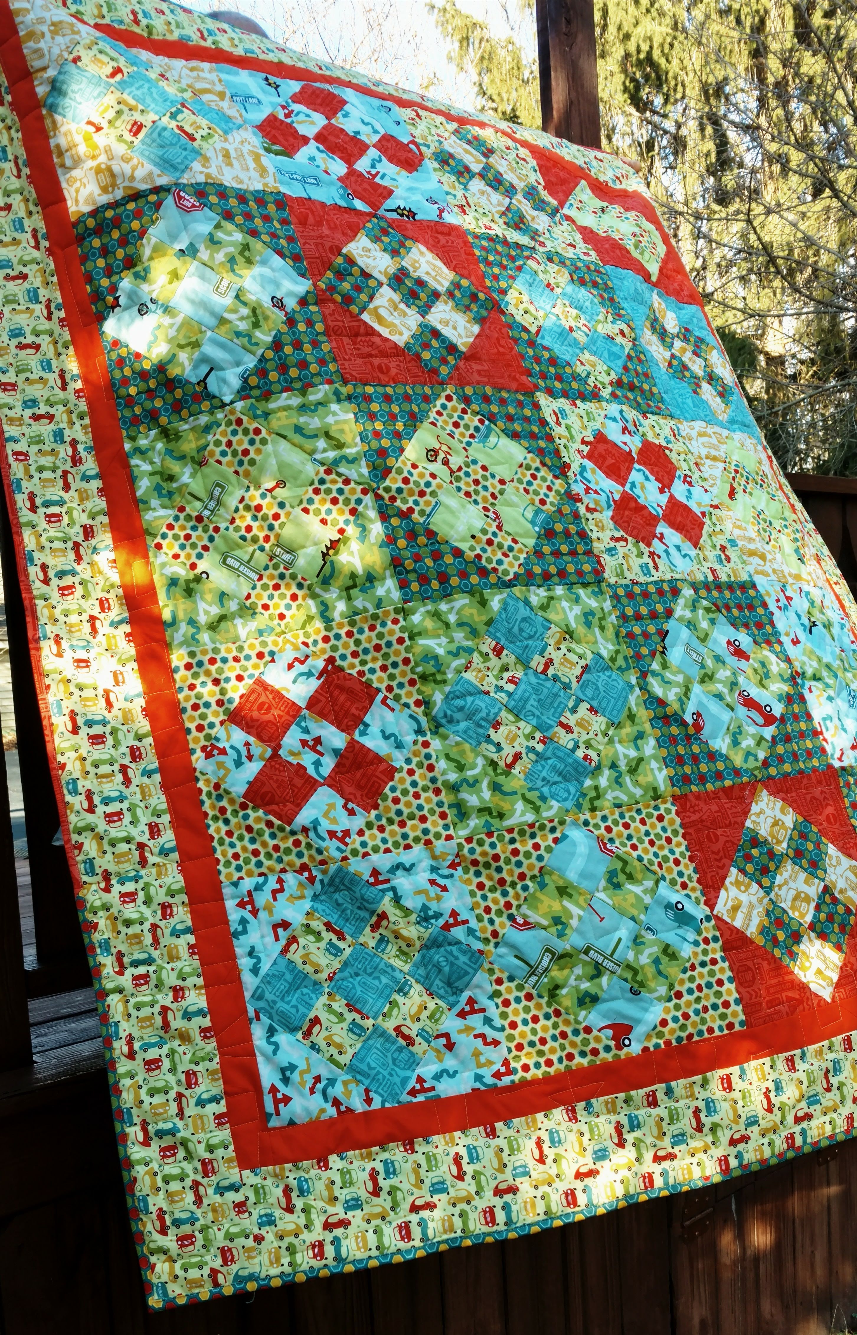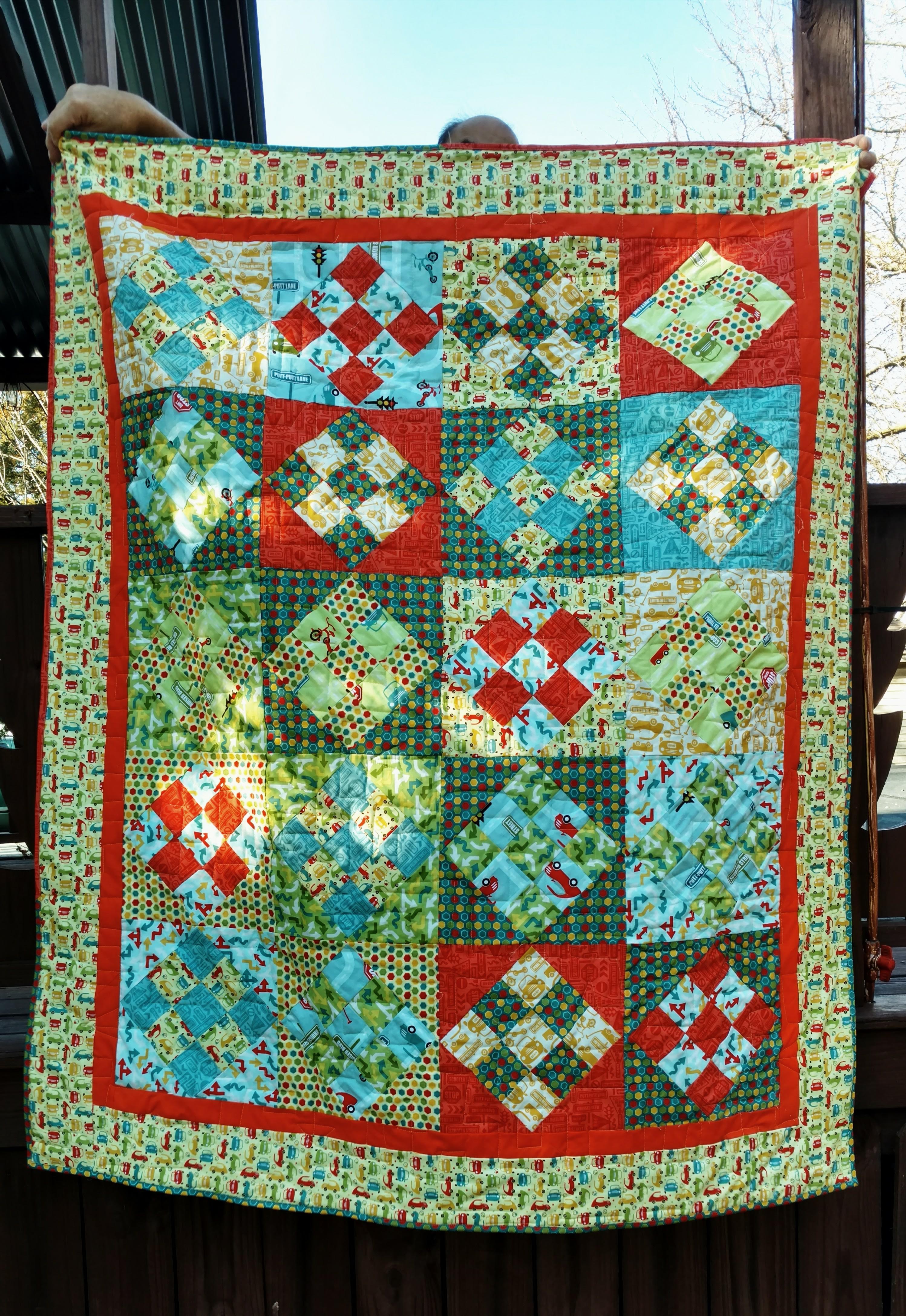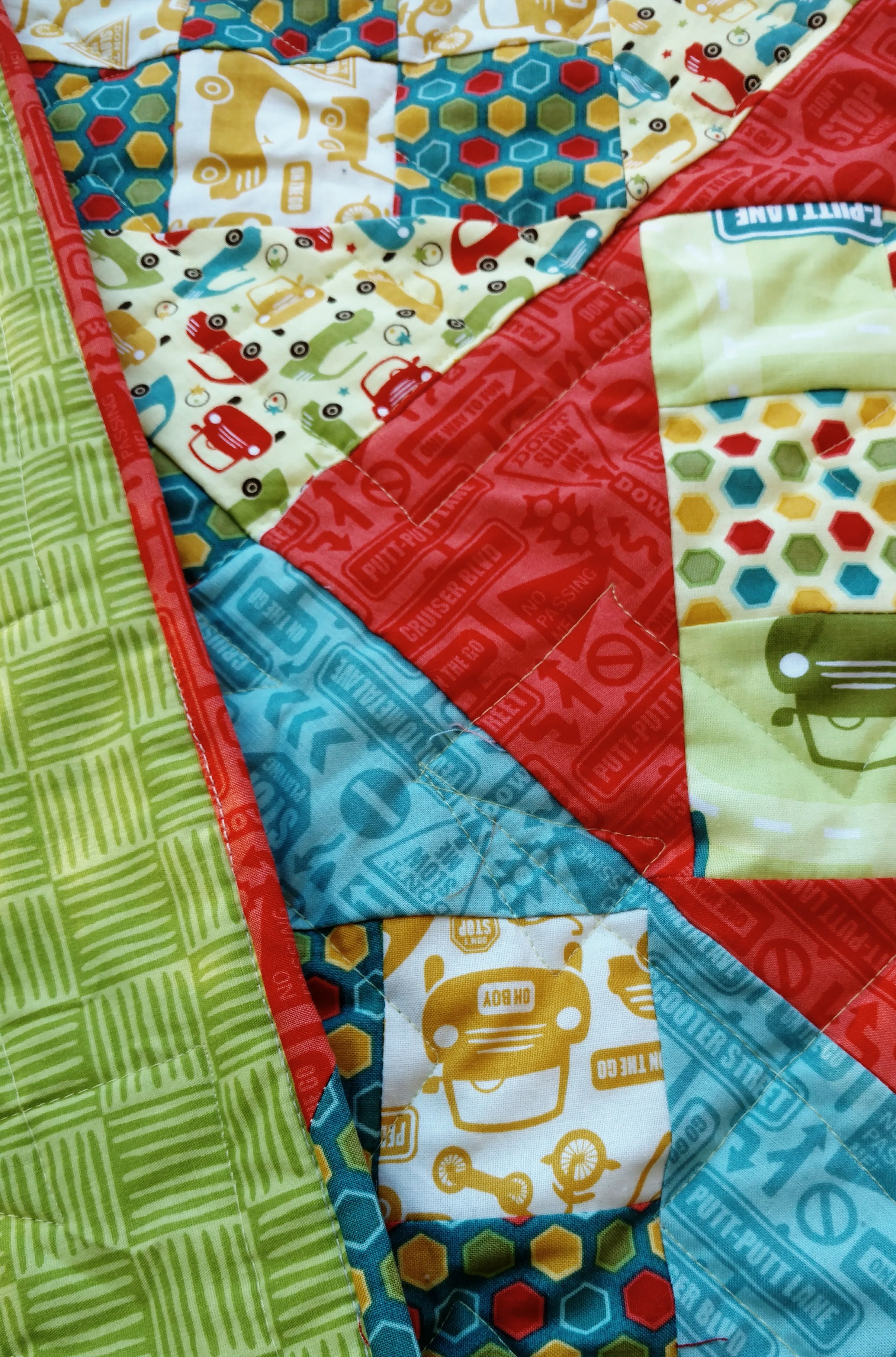 Yesterday, I posted my traffic jam finish. Today, I want to share a bit about a new experiment in machine binding I have been doing. One of the presenters at a guild presentation, this fall, mentioned, that, he used steam a seam when attaching his binding. I was intrigued and went to Joann fabrics that night to find what he used.