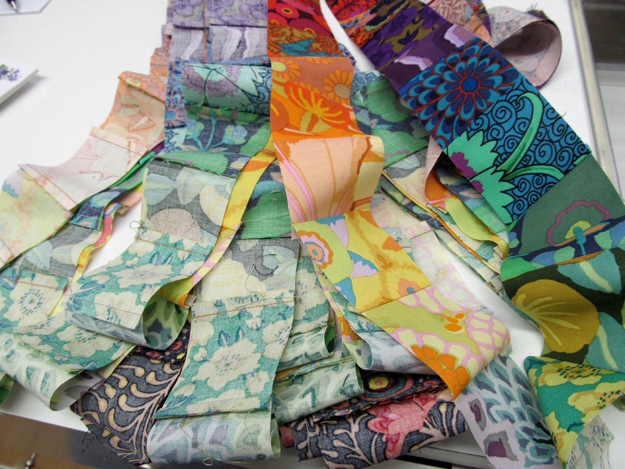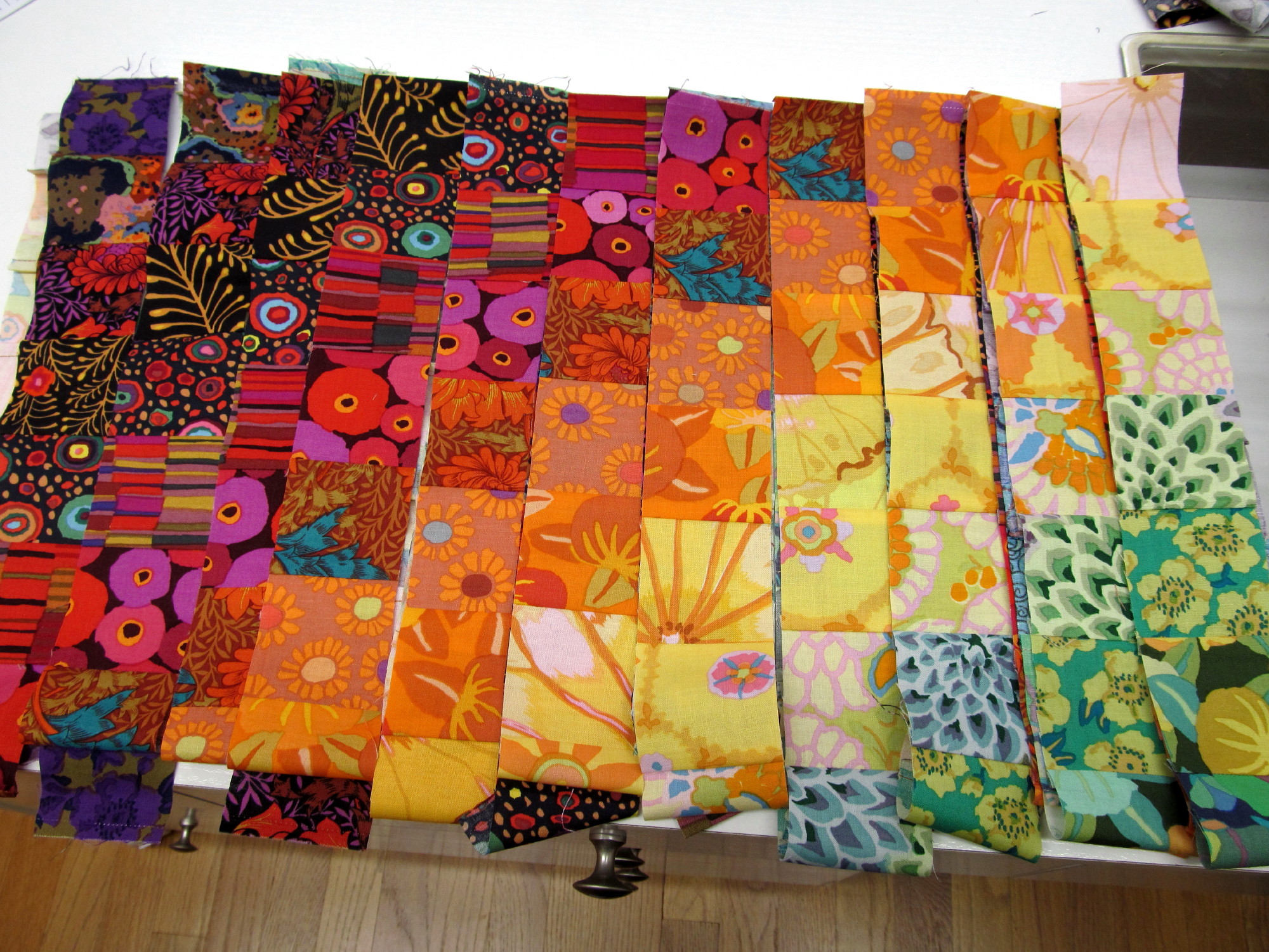 read moreMy guild has asked me to teach a trip around the world quilt workshop. I agreed, if, I could use what I had on hand. Of course, I would need samples of how to make it. I had a whole bucket of flannel 3 1/2 inch strips, yippee. I am not sure the colors will be a stand out, but, that is the magic of TAW quilts. They seem to do their own thing, no matter what the fabric is. I have the strip sets made, and, it is time to subcut and start laying them out.