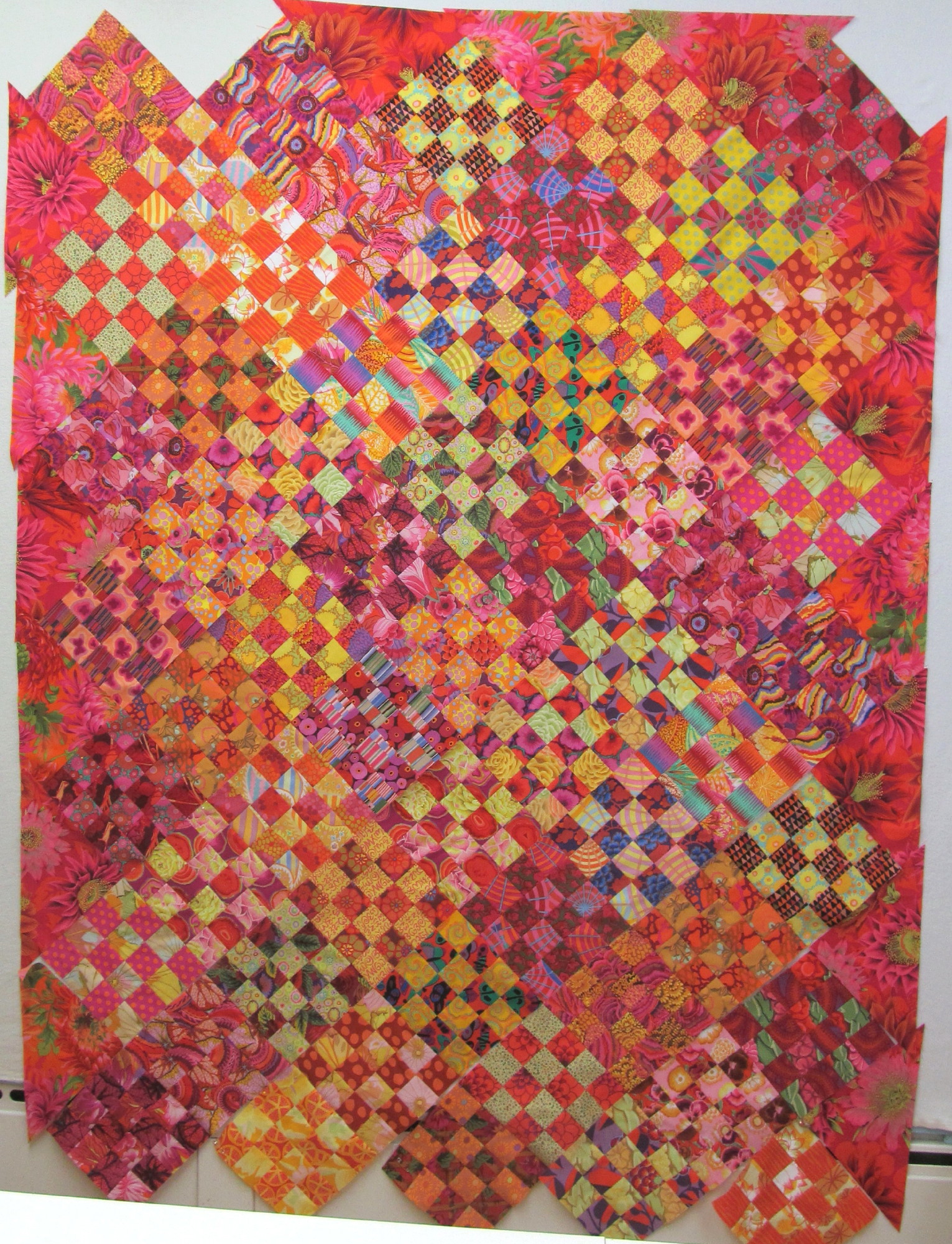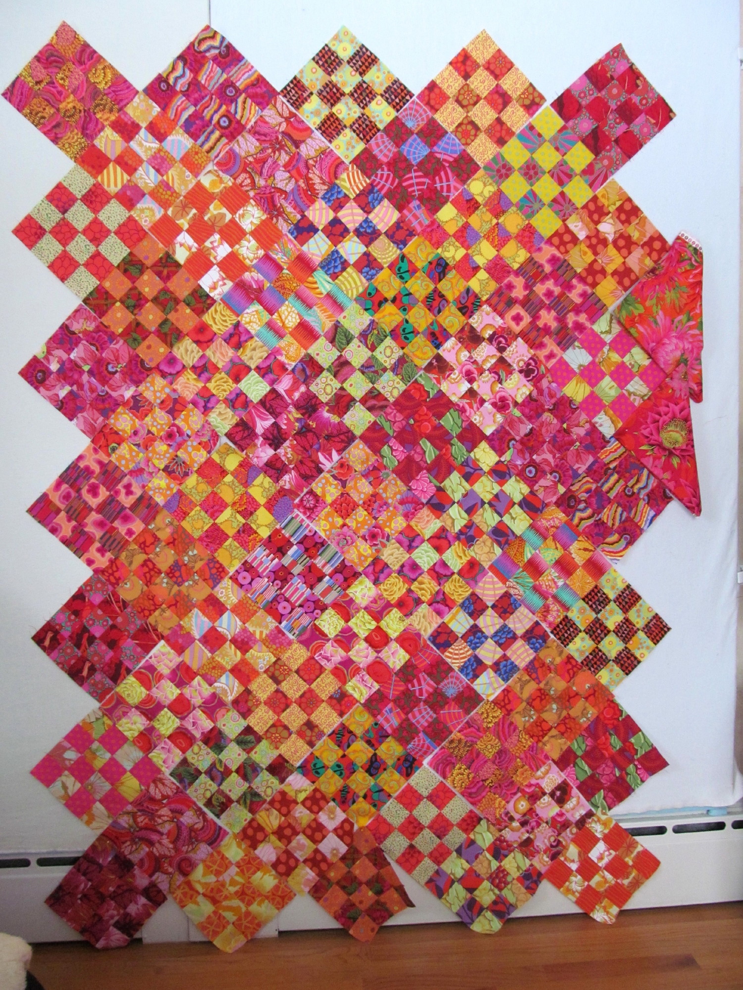 I have had a trip around the world quilt on my bucket list for a long time. I had tried the Bonnie Hunter free pattern, but, I did not like the outcome. She had promised that any scrappy combination would work, and, I took her at her word. I managed to have scrappy fabrics that did not work. But, I have still admired all of them I have seen. I started investigating the colors and movement, watching and reading and you tube. I was determined to try again. I think the key is to have color groups together in the ...