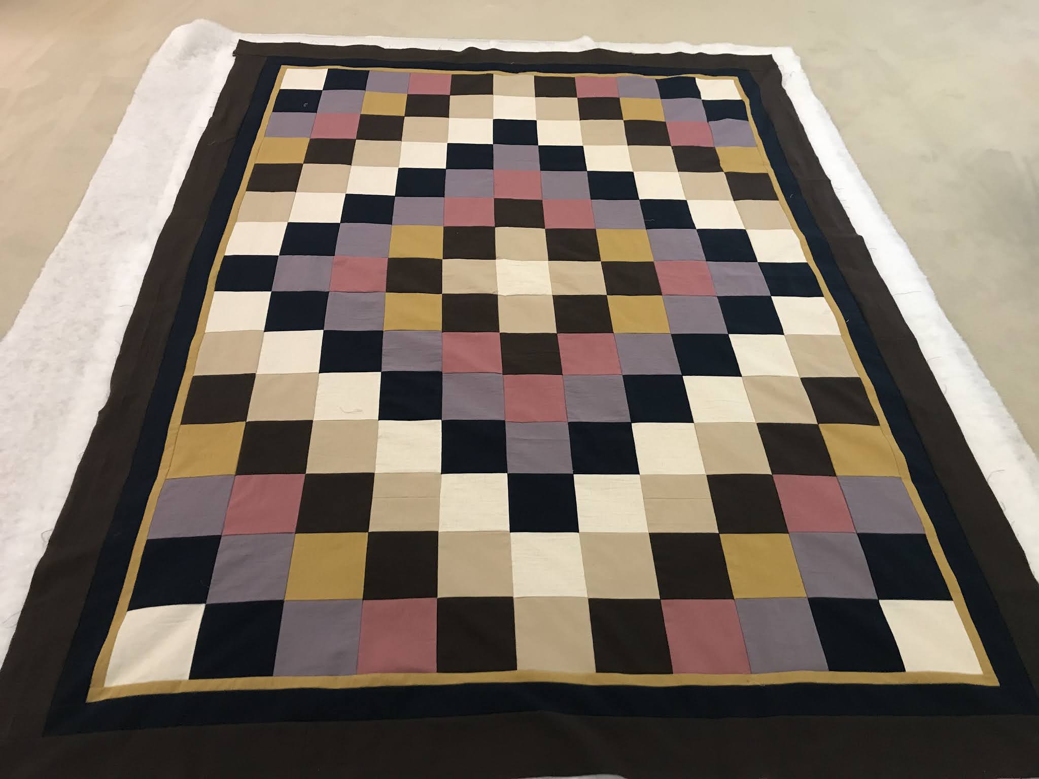 I have a finish for Friday. My trip a around the world baby quilt for charity is quilted and bound. I taught a workshop for this quilt for my guild.