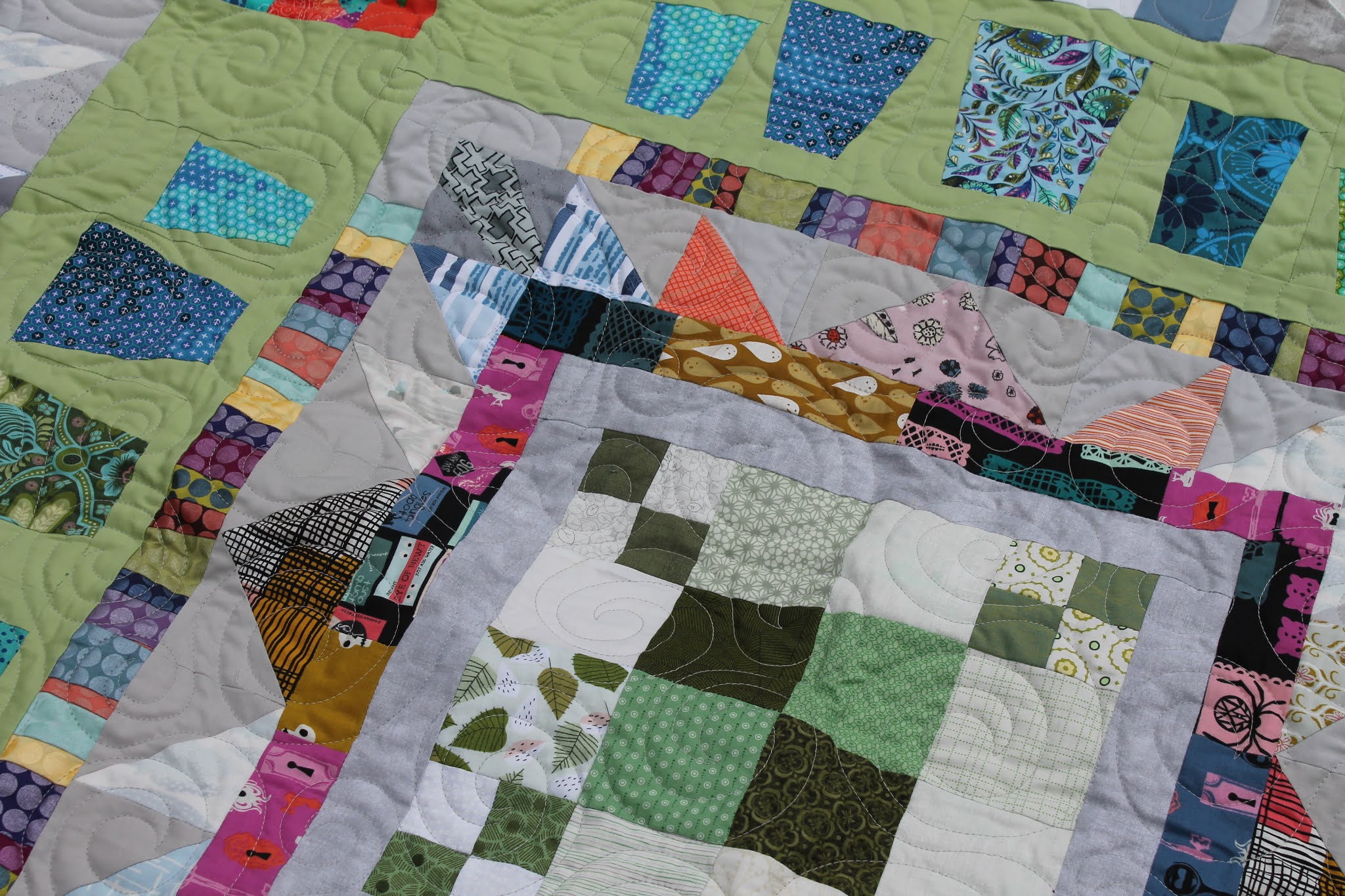 Every once in a while I dig through my orphan block and spare parts suitcase and see if I can put together a quilt from some of the items.
