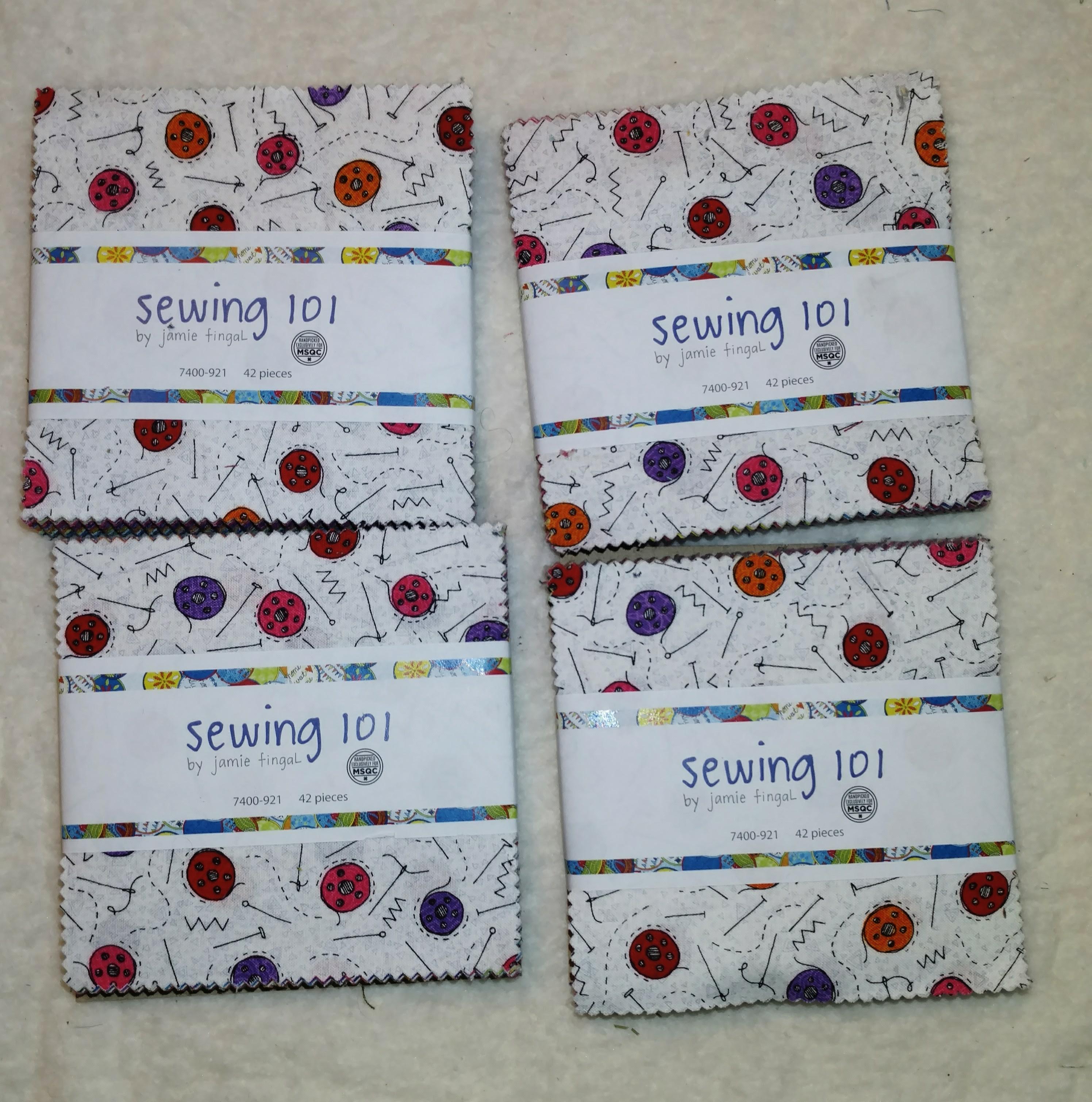 Aren't these cute? They were on sale and I am always sad that charm packs don't make very big quilts, so, I bought 4.