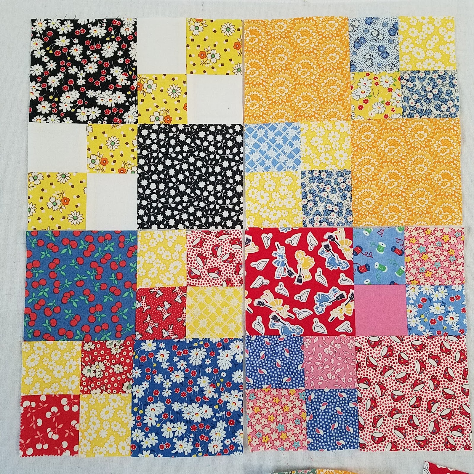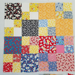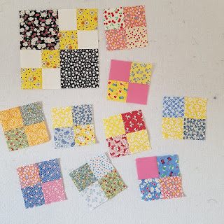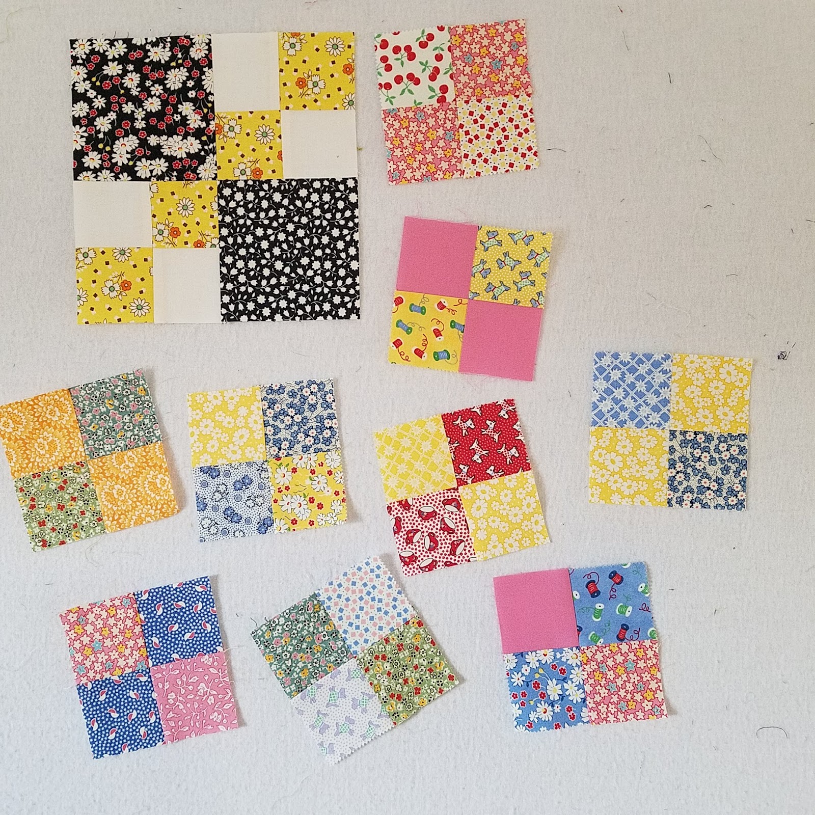 First, I made a bunch of smaller (4.5" by 4.5") 4-patch units.