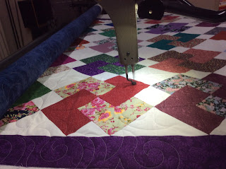 Rosemary from Wilsonton deliver 4 quilts yesterday afternoon. The first is being quilted with the budget meandering leaves, the pinwheel quilt with stars and loops, and the next two with the budget deb's swirls pattern.