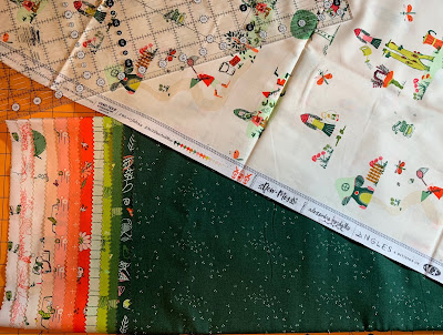and a half yard of the little witches fabric and one of the main print fabrics.