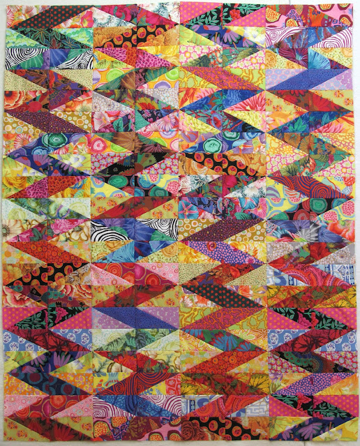 Earlier in the day I sewed all of the rest of the triangle squares and just put them up on the design wall as I finished each matching group. I haven't decided if I should mix them up or leave them matching.