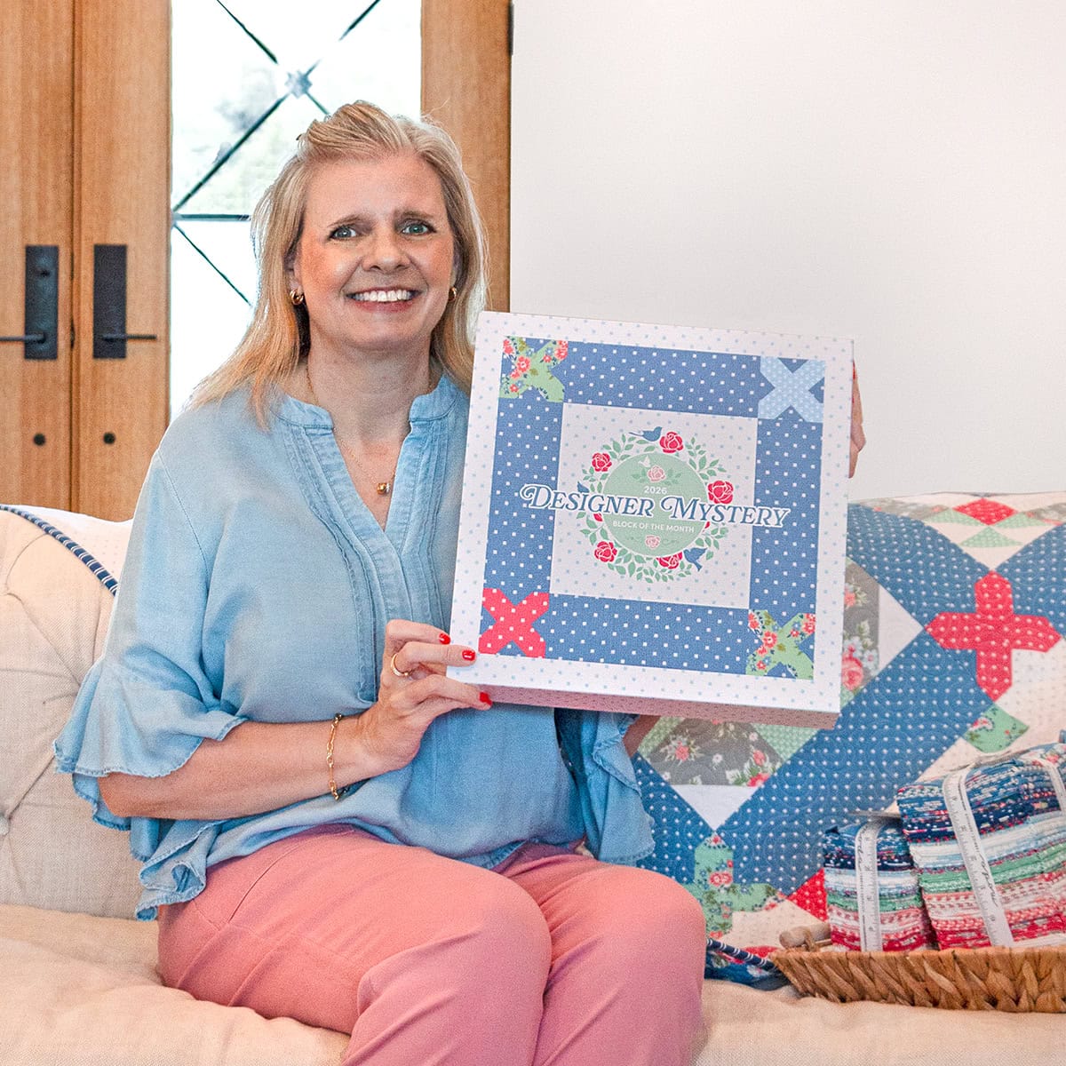 The 2026 Designer Mystery Block of the Month is about to start, and we’re sew excited to share a sneak peek with all of you! While you will have to wait to see all 12 blocks together, today we’re sharing all the details you need to know to get started. This year’s Designer Mystery Quilt is stitch-themed and imbued with the timeless colors of the A Cat Named Stitch collection by Camille Roskelley for Moda Fabrics. Join us in making the 19th Annual Designer Mystery Quilt by Fat Quarter Shop!
