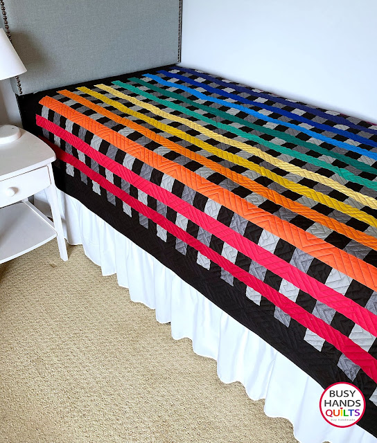 Woven Threads is an easy modern strip quilt pattern. It goes together quickly, and I can see making it again and again in a single colorway or two, in addition to rainbows ...