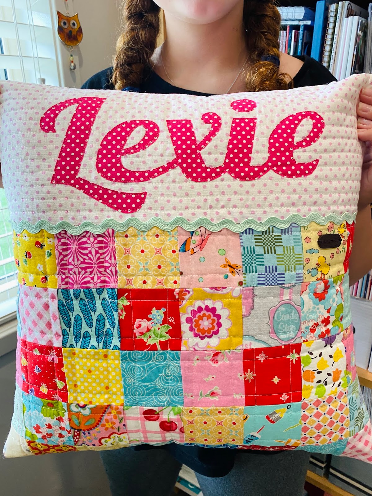 It's no secret that I really enjoy making custom scrappy patchwork pillows as gifts for family or friends. I also take custom orders for these very unique pillows through my Facebook page. They make especially great gifts for people with unusual names.