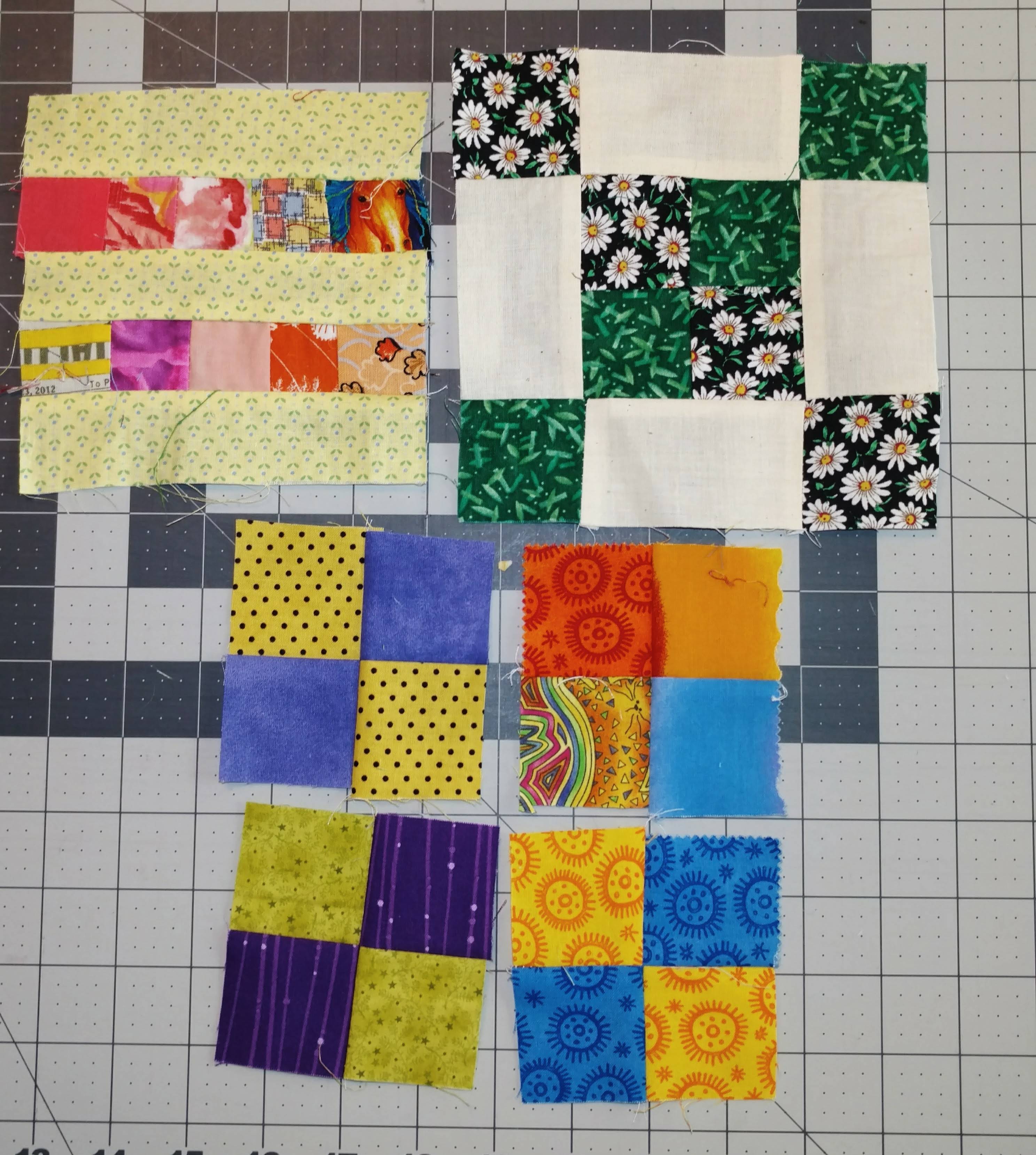 A little bit here and there. I found some bright 4 patches in my reorganization of the project selves. I think I was planning on making a stepping stone quilt with them. In any event, I brought them over to work on as more of a leader/ ender.